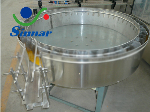 STP系列半自動理瓶機主要應(yīng)用于灌裝機前道工序,配合輸送帶完成堆存、理順和自動進瓶的工作,是全自動生產(chǎn)流水線不可或缺的配置設(shè)備。機身、轉(zhuǎn)盤臺面及護瓶欄均為優(yōu)質(zhì)不銹鋼板制作,易清潔保養(yǎng)。轉(zhuǎn)盤臺面制作精良,平整光滑,保證理瓶順暢。標準轉(zhuǎn)盤臺面直徑為1000mm,護瓶欄可調(diào)節(jié)高低、開檔能適應(yīng)各種大小瓶型,速度可自由調(diào)節(jié)。也可根據(jù)用戶需求定制。